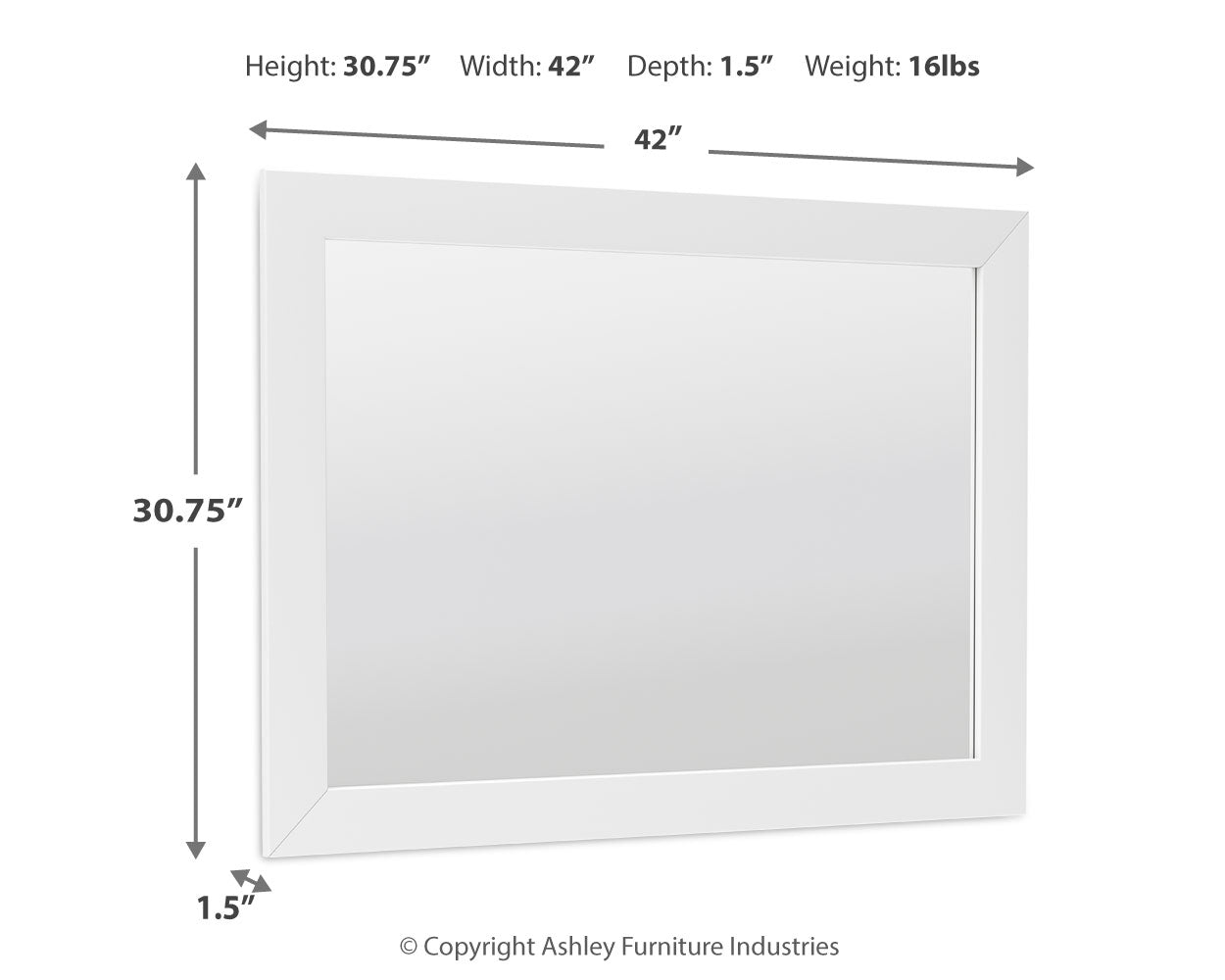 | Bedroom Mirror | 42" | 1" | 31" |