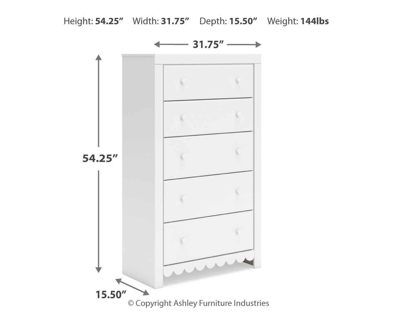 | Five Drawer Chest | 32" | 15" | 54" |